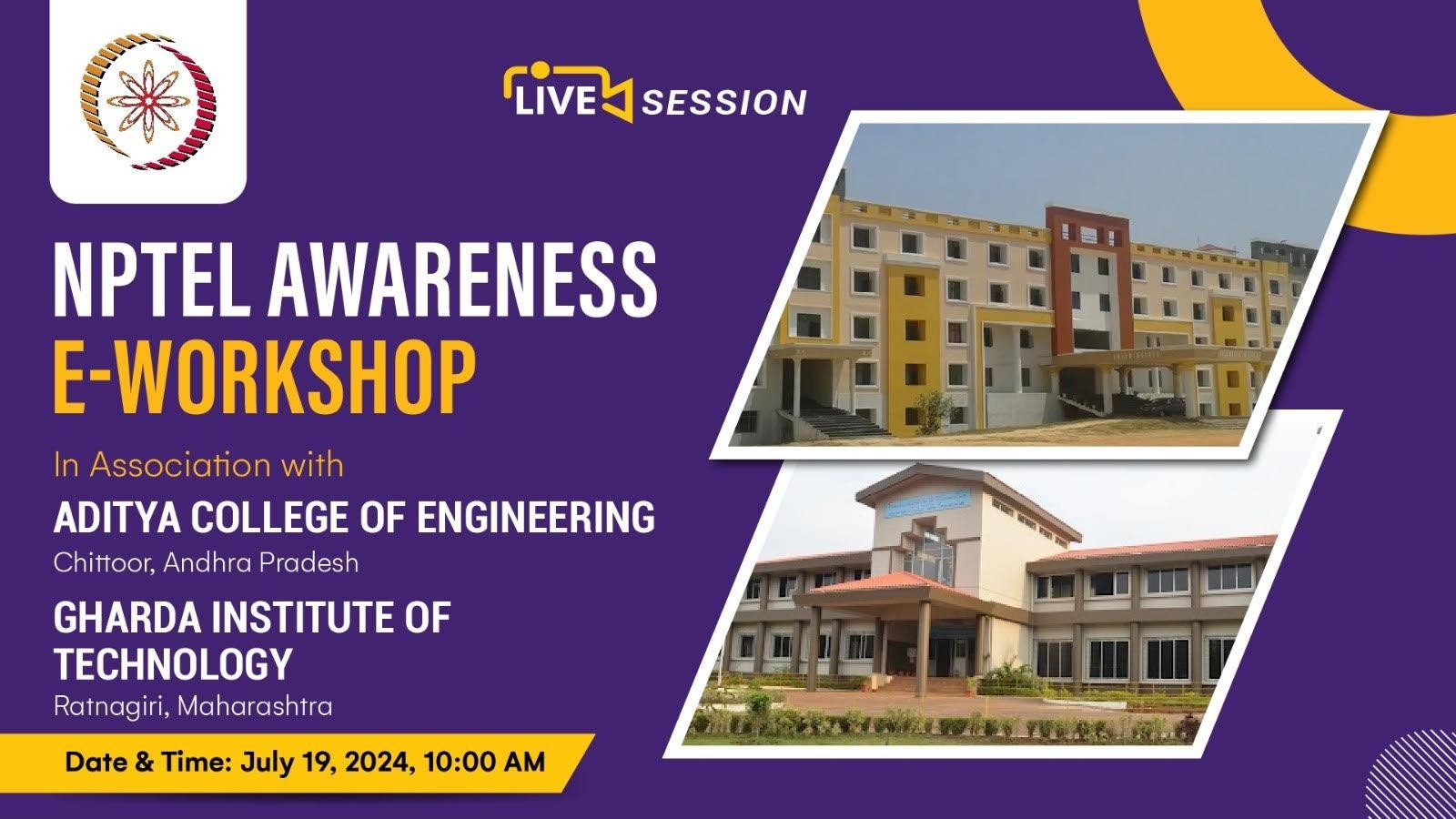 NPTEL Awareness Workshop: 19.07.24 at 10.00 to 12.00 noon IIT Madras