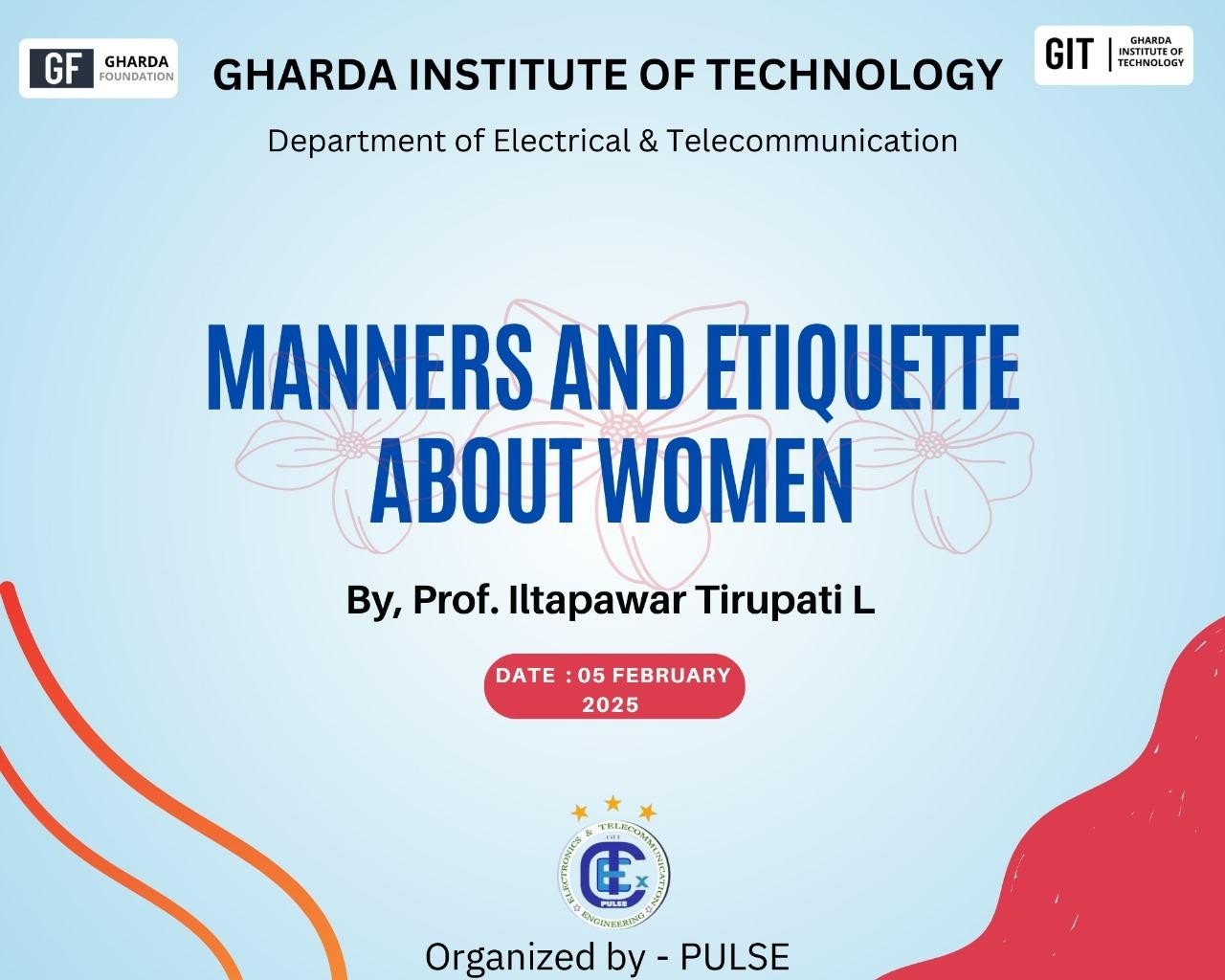 Seminar on MASTERING MANNERS and ETIQUETTE ABOUT WOMEN. Date: 04/02/2025 Time: -11:00 PM Resource Person:- Prof. Iltapawar Tirupati L